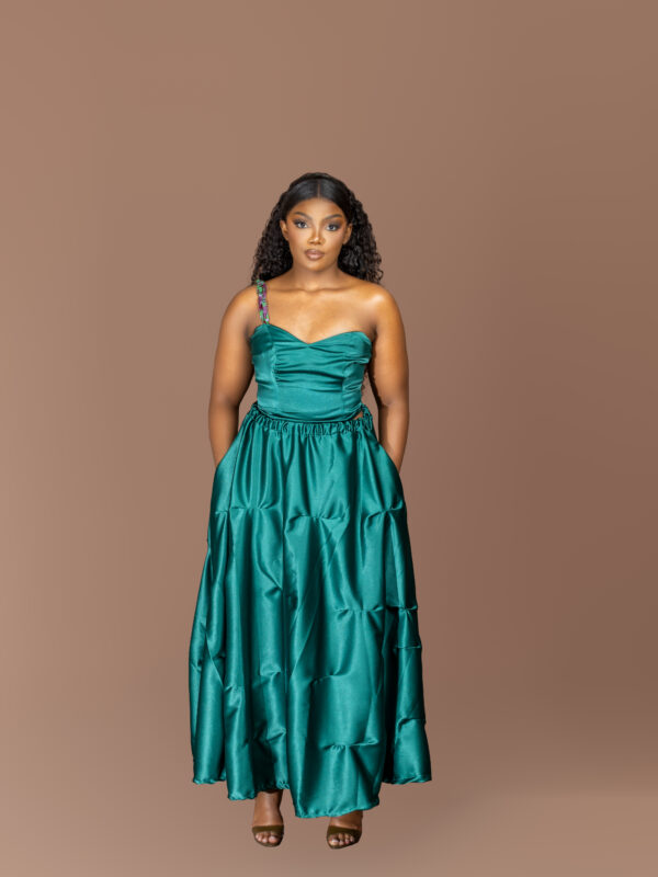 The Adepa Set is a vision of modern goddess energy. The top features a sophisticated halter neckline with a cut-out design that highlights the shoulders and back. The true focal point is the handcrafted, thick braided rope detailing that circles the waist of the floor-length skirt, adding texture and artistic flair to the clean white silhouette. Crafted from a fluid fabric that moves gracefully, this set is perfect for white parties, beach weddings, or exclusive resorts.